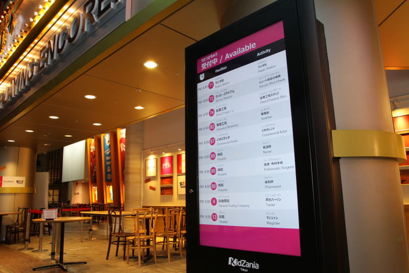 場內有電子告示牌告知大家每個場館和職業的體驗時間,原先覺得跨區下載APP覺得有點小麻煩,但體驗完第一場之後還是決定下載APP就不用一直找電子告示牌,可以更有效率的掌握每個場館的時間,推薦使用iPhone的家長可以跨區下載APP。